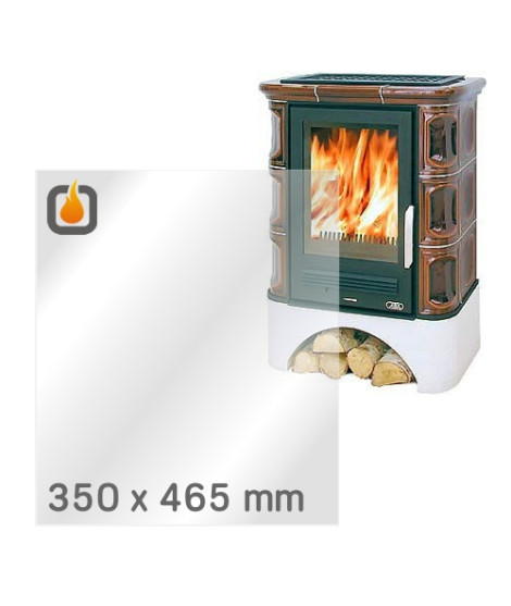 Das Glas hat die Masse 350 x 465 mm und eine Dicke von 4 mm. Es ist klar, beidseitig identisch und ideal als Ersatz für das originale Sichtglas Ihres Kaminofens.