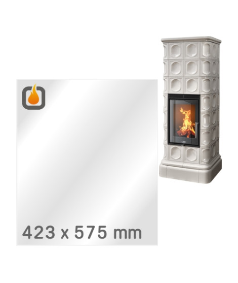 Das Glas hat die Masse 423 x 575 mm und eine Dicke von 4 mm. Es ist klar, beidseitig identisch und ideal als Ersatz für das originale Sichtglas Ihres Kaminofens.