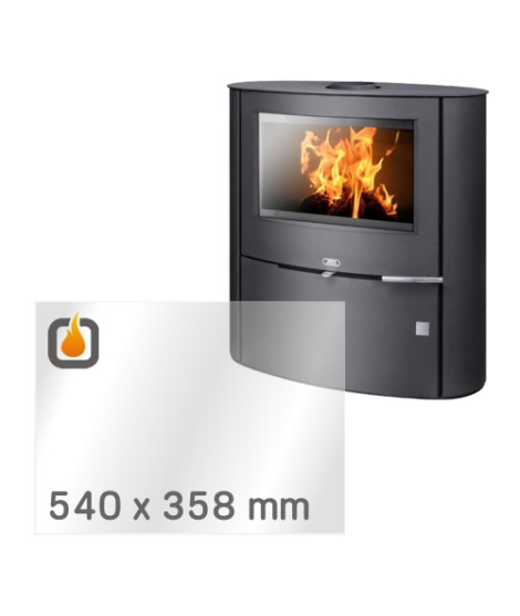 Das Glas hat die Masse 540 x 358 mm und eine Dicke von 4 mm. Es ist klar, beidseitig identisch und ideal als Ersatz für das originale Sichtglas Ihres Kaminofens.