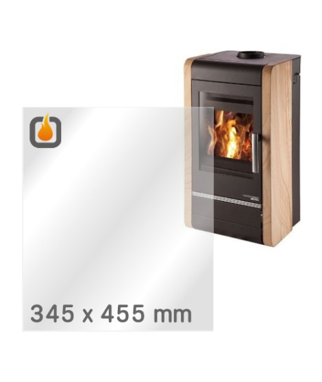 Das Glas hat die Masse 345 x 455 mm und eine Dicke von 4 mm. Es ist klar, beidseitig identisch und ideal als Ersatz für das originale Sichtglas Ihres Kaminofens.