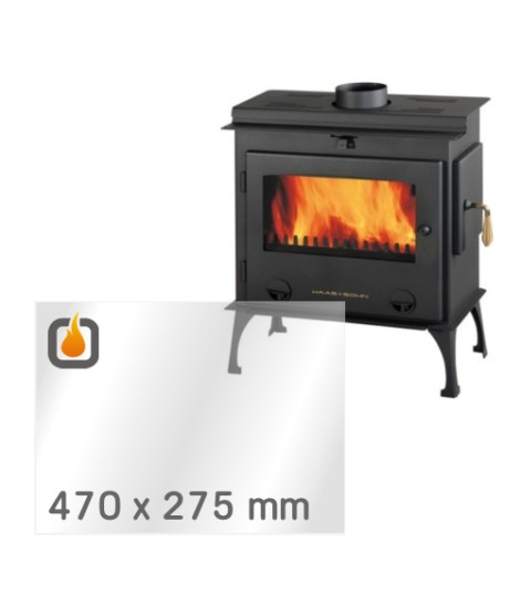 Das Glas hat die Masse 470 x 275 mm und eine Dicke von 4 mm. Es ist klar, beidseitig identisch und ideal als Ersatz für das originale Sichtglas Ihres Kaminofens.
