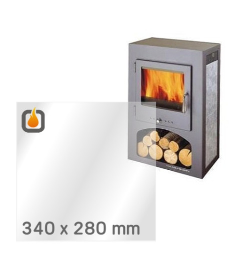 Das Glas hat die Masse 340 x 280 mm und eine Dicke von 4 mm. Es ist klar, beidseitig identisch und ideal als Ersatz für das originale Sichtglas Ihres Kaminofens.