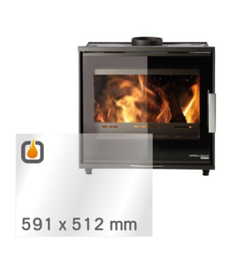 Das Glas hat die Masse 591 x 512 mm und eine Dicke von 4 mm. Es ist klar, beidseitig identisch und ideal als Ersatz für das originale Sichtglas Ihres Kaminofens.
