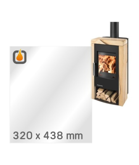 Das Glas hat die Masse 320 x 438 mm und eine Dicke von 4 mm. Es ist klar, beidseitig identisch und ideal als Ersatz für das originale Sichtglas Ihres Kaminofens.