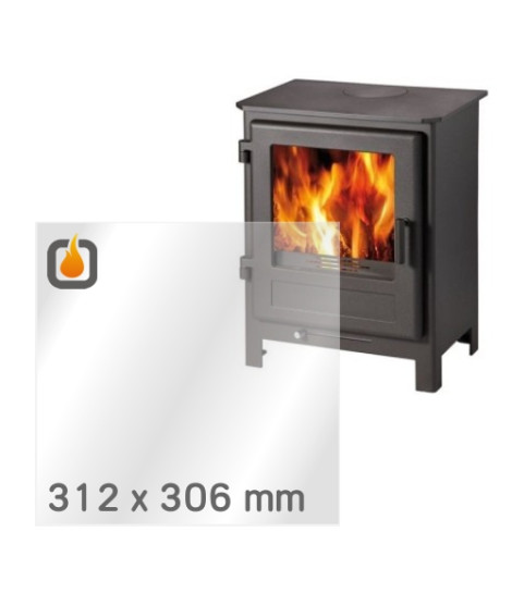 Das Glas hat die Masse 312 x 306 mm und eine Dicke von 4 mm. Es ist klar, beidseitig identisch und ideal als Ersatz für das originale Sichtglas Ihres Kaminofens.