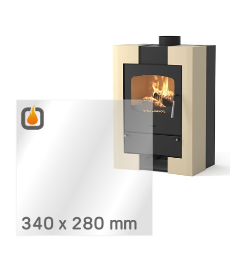 Das Glas hat die Masse 340 x 280 mm und eine Dicke von 4 mm. Es ist klar, beidseitig identisch und ideal als Ersatz für das originale Sichtglas Ihres Kaminofens.
