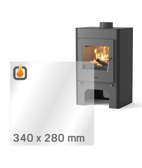 Das Glas hat die Masse 340 x 280 mm und eine Dicke von 4 mm. Es ist klar, beidseitig identisch und ideal als Ersatz für das originale Sichtglas Ihres Kaminofens.