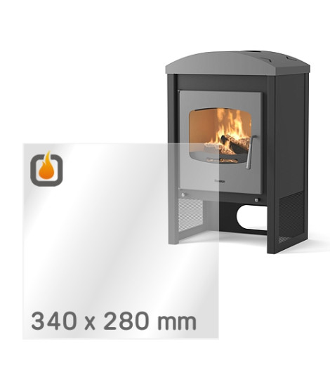 Das Glas hat die Masse 340 x 280 mm und eine Dicke von 4 mm. Es ist klar, beidseitig identisch und ideal als Ersatz für das originale Sichtglas Ihres Kaminofens.
