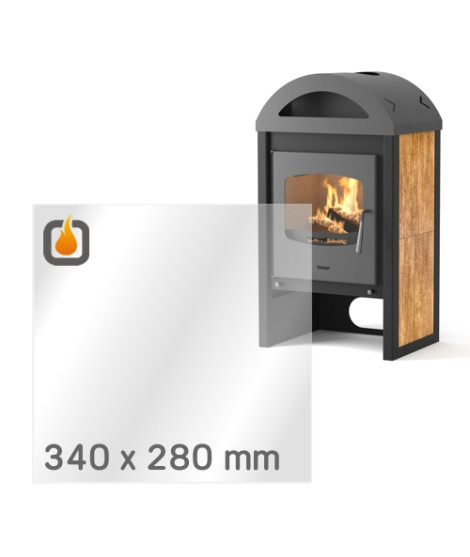 Das Glas hat die Masse 340 x 280 mm und eine Dicke von 4 mm. Es ist klar, beidseitig identisch und ideal als Ersatz für das originale Sichtglas Ihres Kaminofens.