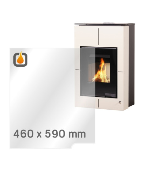 Das Glas hat die Masse 460 x 590 mm und eine Dicke von 4 mm. Es ist klar, beidseitig identisch und ideal als Ersatz für das originale Sichtglas Ihres Kaminofens.