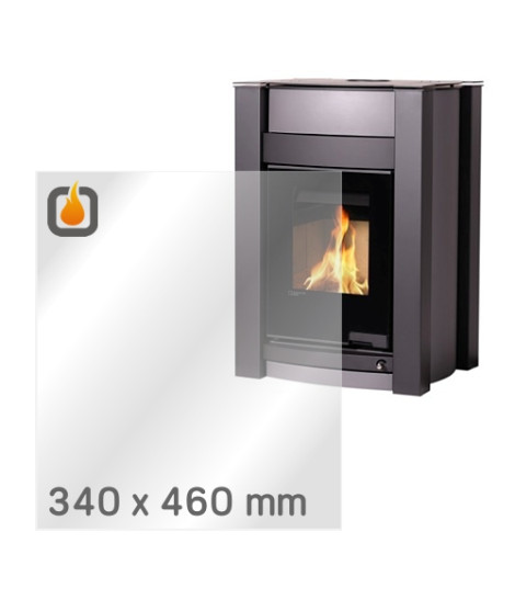Das Glas hat die Masse 340 x 460 mm und eine Dicke von 4 mm. Es ist klar, beidseitig identisch und ideal als Ersatz für das originale Sichtglas Ihres Kaminofens.