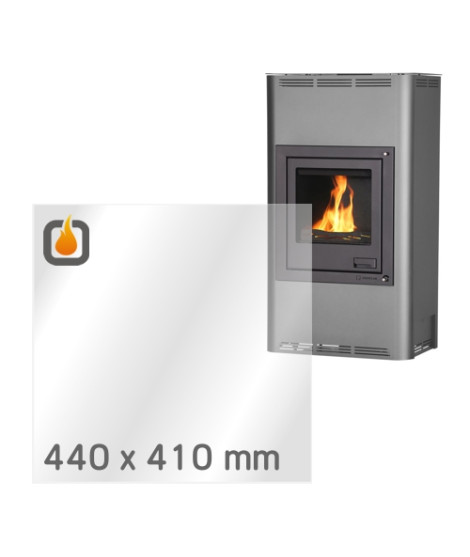 Das Glas hat die Masse 440 x 410 mm und eine Dicke von 4 mm. Es ist klar, beidseitig identisch und ideal als Ersatz für das originale Sichtglas Ihres Kaminofens.