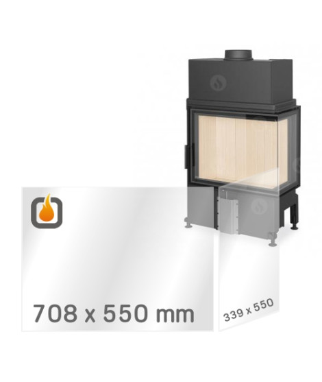 Die Ersatzt-Feuerfestprismenscheibe der Stärke 4mm mit den Maßen 709 x 550 mm und 339 x 550 mm für Kamineinsatz IMPRESSION R/L 2g S 71.60.34.21.