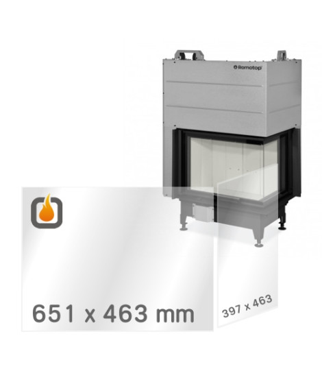 Die Ersatzt-Feuerfestprismenscheibe der Stärke 4mm mit den Maßen 651 x 463 mm und 397 x 463 mm für Kamineinsatz HEAT R/L 3G L 65.51.40.24.