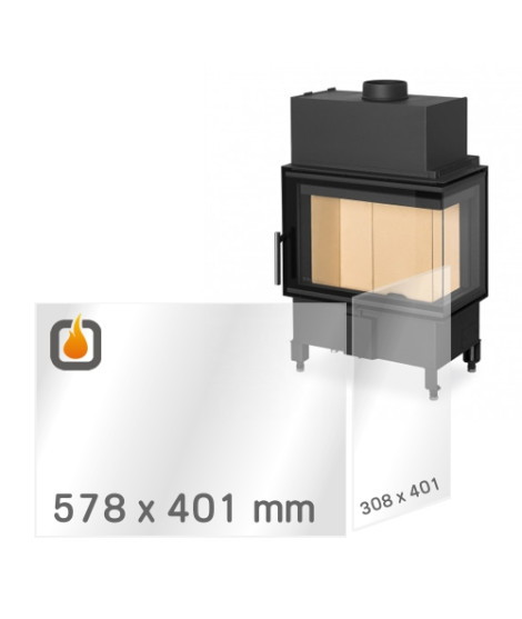 Die Ersatzt-Feuerfestprismenscheibe der Stärke 4mm mit den Maßen 578 x 401 mm und 308 x 401 mm für Kamineinsatz HEAT R/L 2g S 60.44.33.23.
