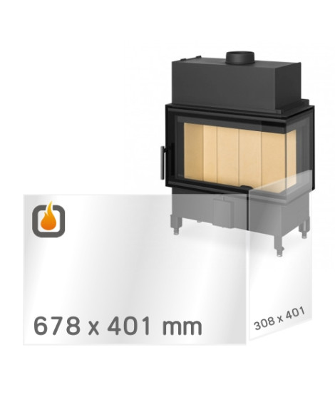 Die Ersatzt-Feuerfestprismenscheibe der Stärke 4mm mit den Maßen 678 x 401 mm und 308 x 401 mm für Kamineinsatz HEAT R/L 2G S 70.44.33.23.