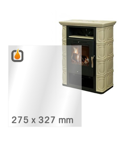 Das Glas hat die Masse 275 x 327 mm und eine Dicke von 4 mm. Es ist klar, beidseitig identisch und ideal als Ersatz für das originale Sichtglas Ihres Kaminofens.