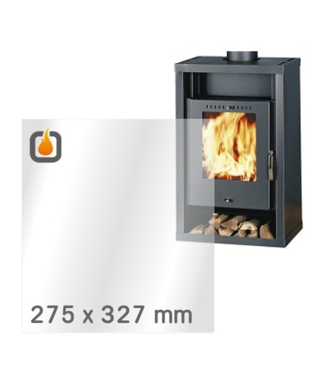Das Glas hat die Masse 275 x 327 mm und eine Dicke von 4 mm. Es ist klar, beidseitig identisch und ideal als Ersatz für das originale Sichtglas Ihres Kaminofens.