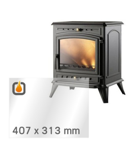 Das Glas hat die Masse 407 x 313 mm und eine Dicke von 4 mm. Es ist klar, beidseitig identisch und ideal als Ersatz für das originale Sichtglas Ihres Kaminofens.