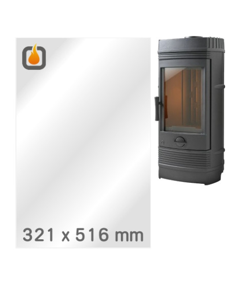 Das Glas hat die Masse 321 x 516 mm und eine Dicke von 4 mm. Es ist klar, beidseitig identisch und ideal als Ersatz für das originale Sichtglas Ihres Kaminofens.