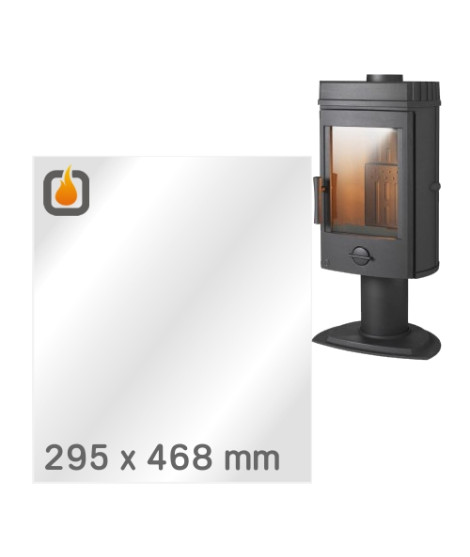 Das Glas hat die Masse 295 x 468 mm und eine Dicke von 4 mm. Es ist klar, beidseitig identisch und ideal als Ersatz für das originale Sichtglas Ihres Kaminofens.