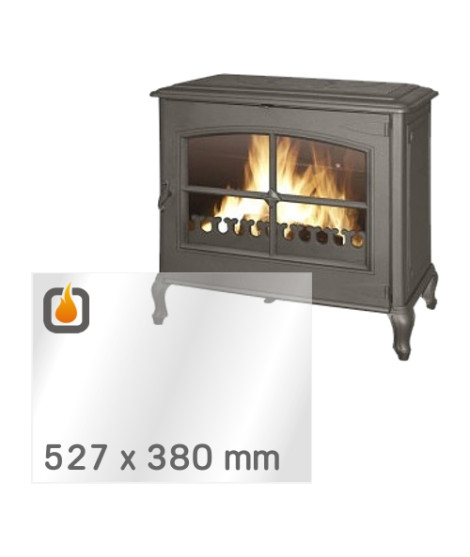 Das Glas hat die Masse 527 x 380 mm und eine Dicke von 4 mm. Es ist klar, beidseitig identisch und ideal als Ersatz für das originale Sichtglas Ihres Kaminofens.