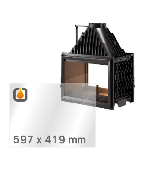 Das Glas hat die Masse 597 x 419 mm und eine Dicke von 4 mm. Es ist klar, beidseitig identisch und ideal als Ersatz für das originale Sichtglas Ihres Kaminofens.