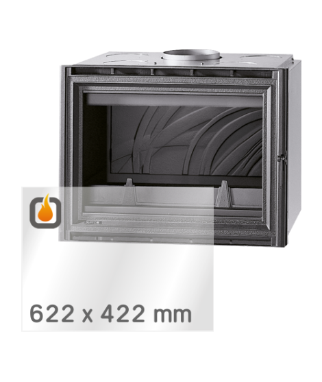 Das Glas hat die Masse 622 x 422 mm und eine Dicke von 4 mm. Es ist klar, beidseitig identisch und ideal als Ersatz für das originale Sichtglas Ihres Kaminofens.