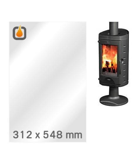 Das Glas hat die Masse 312 x 548 mm und eine Dicke von 4 mm. Es ist klar, beidseitig identisch und ideal als Ersatz für das originale Sichtglas Ihres Kaminofens.