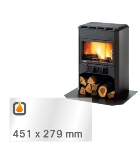 Das Glas hat die Masse 451 x 279 mm und eine Dicke von 4 mm. Es ist klar, beidseitig identisch und ideal als Ersatz für das originale Sichtglas Ihres Kaminofens.