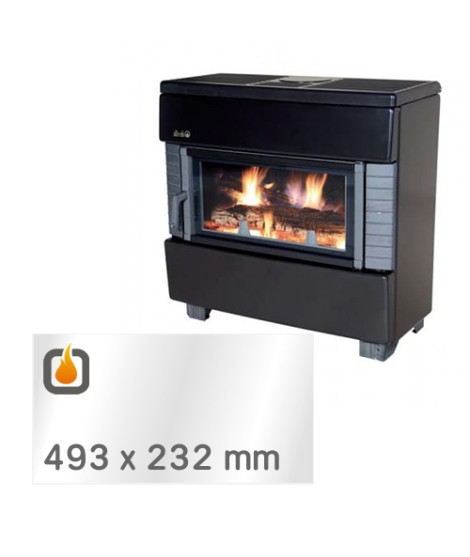 Das Glas hat die Masse 493 x 232 mm und eine Dicke von 4 mm. Es ist klar, beidseitig identisch und ideal als Ersatz für das originale Sichtglas Ihres Kaminofens.