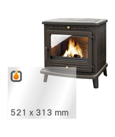 Das Glas hat die Masse 521 x 313 mm und eine Dicke von 4 mm. Es ist klar, beidseitig identisch und ideal als Ersatz für das originale Sichtglas Ihres Kaminofens.